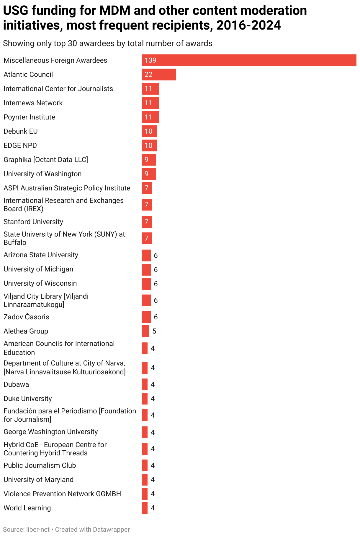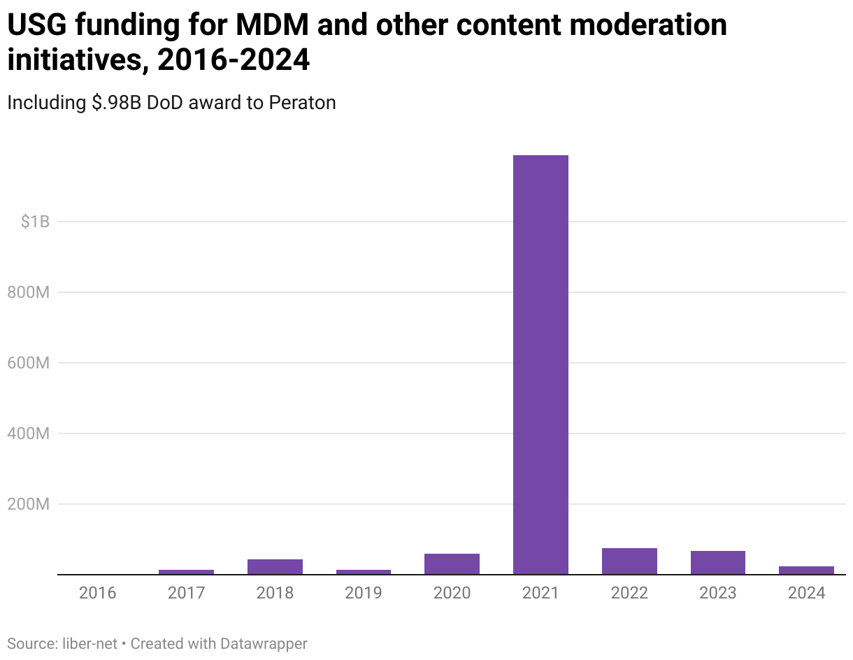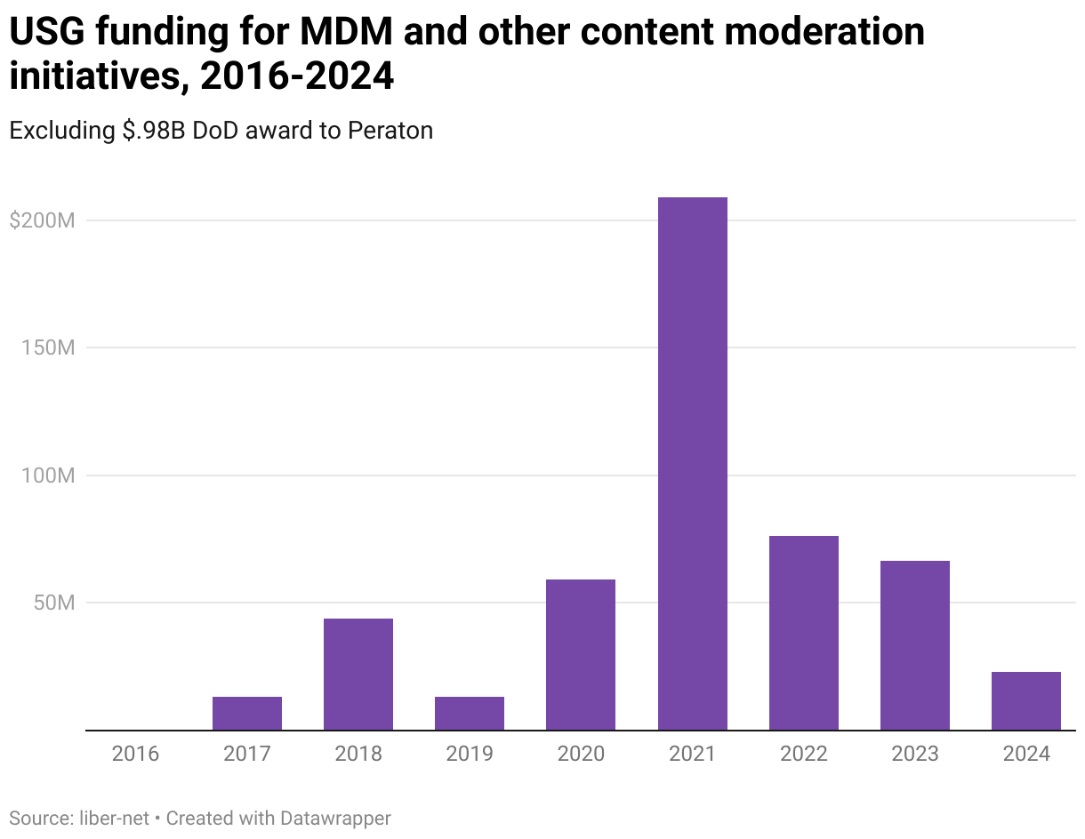 Visualizing Federal Awards for “Mis-, Dis-, or Malinformation” and other content moderation initiatives